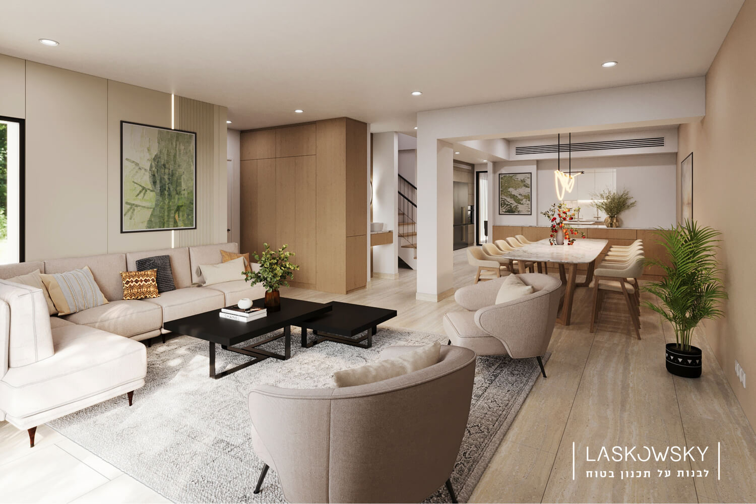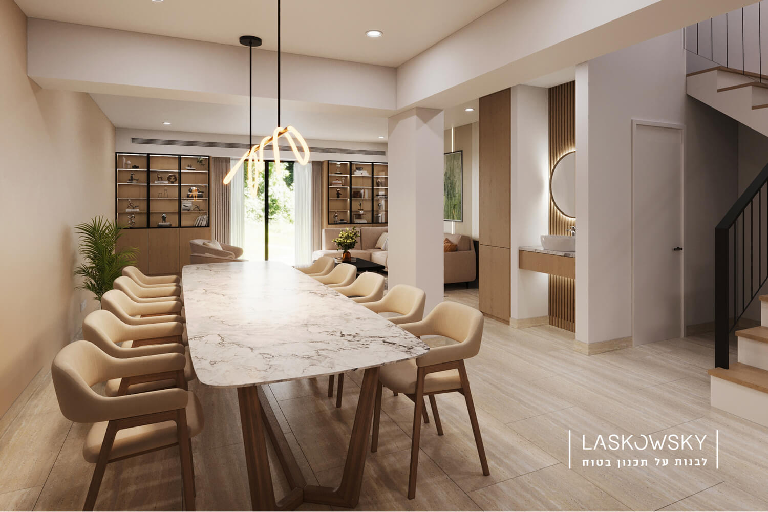 כשהמפקח והקבלן הגיעו לשטח, הם היו פשוט המומים. הם אמרו שמעולם לא נתקלו בתוכניות כל כך ברורות, מסודרות ויסודיות. גם במהלך הבנייה, כשצצו בלת"מים (וכמובן שתמיד יש כאלה 😊), עדינה הייתה זמינה, טיפלה בעניינים במהירות ודאגה שהבנייה תמשיך ללא עיכובים"